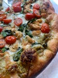 Crushed tomatoes, sliced tomatoes, basil, olive oil & pizza cheese.