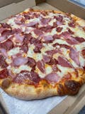 Pepperoni, ham, mushrooms, green & red peppers, black olives, onions & sausage.