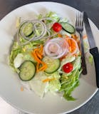 Lettuce, Tomato, Carrots, Cucumber, Red Onion & Black Olives. 2 Dressings