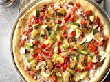 Our fresh dough with sauce, pizza cheese, mushrooms, black olives, onions, green peppers, topped with fresh sliced tomatoes.