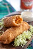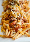 Cheese, white garlic sauce, seasoning, chicken, fried onion & green peppers.