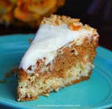 Moist cake, spiced with cinnamon and frosted with cream cheese frosting.