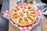 Creamy garlic sauce ,spinach, shrimp, cheery tomato, mozzarella cheese , parmesan cheese