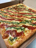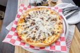 Red or white sauce, mozzarella, , provolone & ricotta and parmesan cheese.