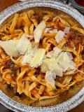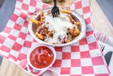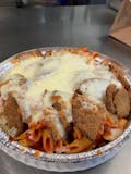 Red sauce, mozzarella, ziti, parsley, parmesan.