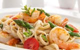 (White sauce). Served with sauteed jumbo shrimps in a white wine lemon sauce.