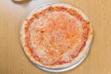 Thin crust topped with mozzarella cheese and tomato sauce.