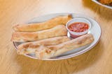 Zucchini sticks dipped in an egg mixture with bread crumbs, parmesan cheese, baking powder, & salt, fried until golden brown.