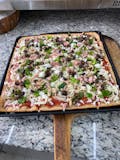 Topped in traditional Philly steak, tomato sauce, and classic cheese