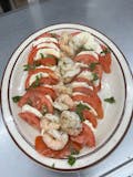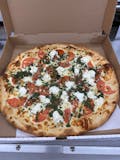 With fresh mozzarella, tomato basil, fresh basil & extra virgin olive oil.