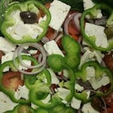 Kalamata olives, garlic, artichokes, roasted peppers, mushrooms, plum tomato sauce.