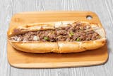 We make our, Cheesesteaks with Premium Rib eye on 12 inch roll. We Use 9 oz of steak that is more than half pound.