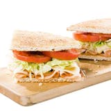 Sliced turkey, cheese, onions, lettuce, tomatoes & mayo.