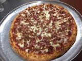 Cheese, pepperoni, sausage, bacon, ham, salami, fresh garlic & Romano (Red sauce).