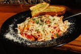 Shrimp, crab meat, mushrooms, onions, tomatoes, mozzarella, provolone & garlic butter sauce.