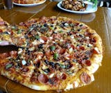 Danish ham, pineapple chunks, bacon, mozzarella, provolone & cheddar on our tomato sauce.