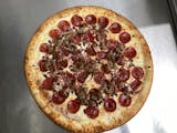 Pepperoni, sausage, ham, peppers, onion, & mushrooms.