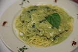 Veal, scallops, spinach, garlic white wine sauce, a touch of marinara sauce.