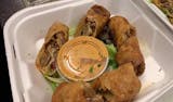 Borsellini pasta, chicken sauteed mushrooms, pink brandy cream sauce topped with baby arugula.