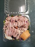 Grilled chicken, lettuce, carrots, onions, pineapple, ham, red cabbage, crunchy noodles & citrus sauce.