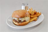 Ground beef, lettuce, tomatoes, onions, mozzarella and American cheese.