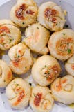 A classic snack, our garlic knots are strips of pizza dough tied in a knot, baked, and then topped with melted butter, garlic, and parsley.