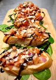 Breaded chicken cutlet, bruschetta, extra virgin olive oil, shaved parm, balsamic glaze.