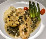 Sautéed chicken with mushrooms, roasted peppers and asparagus cooked in a creamy limoncello sauce.