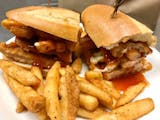 Grilled or breaded chicken, BBQ sauce, cheddar and mozzarella.