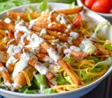 baked fries topped with Chicken, bacon, cheese and creamy ranch dressing. Hot Chicken also available.