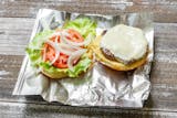 Ground beef, lettuce, tomato, onion, cheddar cheese.