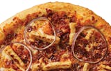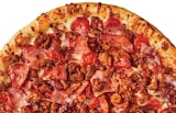 This is mad with meat! Pepperoni, tender ham, capicola, crisp bacon, savory Italian sausage and Wisconsin mozzarella cheese on our private-labeled pizza sauce.