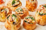 It starts with our signature dough. Wrapped around spinach and mushrooms, stuffed with mozzarella cheese, brushed with white garlic sauce and sprinkled with Pecorino Romano cheese. Served with marinara sauce.