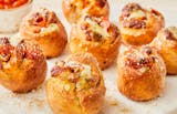 It starts with our signature dough. Wrapped around bacon and cheddar, stuffed with mozzarella cheese, brushed with white garlic sauce and sprinkled with Pecorino Romano cheese. Served with marinara sauce.
