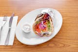 Gyro, tomato, feta cheese.