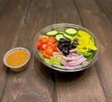 Lettuce, Tomatoes, Onion, Banana Peppers, Olives, Cucumber and Feta Cheese