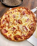 Delicious regular crust topped with our blended pizza cheese, ham and pineapple. White pizza optional.