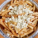 Caramelized onions, battered eggplant, feta cheese and blended cheeses top our homemade pizza dough.