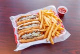Chargrilled shaved steak. Traditionally made with cheese, onions, mushrooms and peppers, but please indicate toppings.