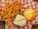 Tomatoes, onion rings & American cheese. Served with bleu cheese.
