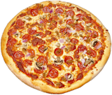 Cheese, sausage, beef, pepperoni, ham, peppers, mushrooms, onions.
