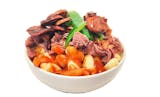 Gravy sauce, shaved steak, caramelized onions, mushrooms, green peppers.