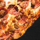 Made with a 12" round gluten-free crust. Classic red OG sauce with pepperoni & italian sausage.