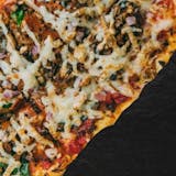 Made with a 12" round gluten-free crust. S+H vegan favorite non-dairy cheese, vegan pepperoni, vegan sausage, spinach, onions, and mushrooms.
