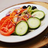 Crispy lettuce and tomato garnished with garlic, ripe olive, and mild Italian pepper. Your choice of dressing.