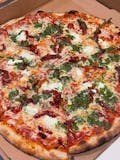 Mozzarella cheese, spinach, mushroom, artichokes, onions, fresh garlic, and tomato sauce.