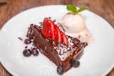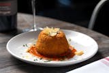 Tomato risotto (rice) ball, stuffed with mozzarella, eggplant, and basil, served over house tomato sauce.
