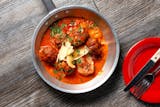 House veal meatballs, tomato sauce and mozzarella cheese.
