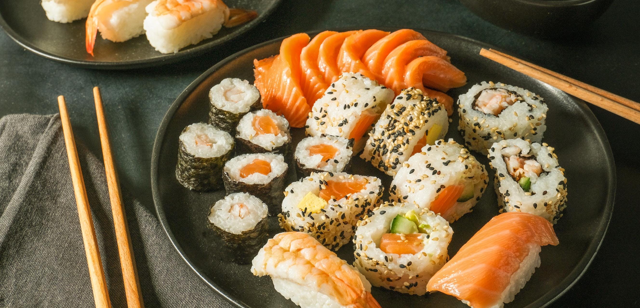 Salmon, tuna, yellow tail, avocado, salmon, roe.