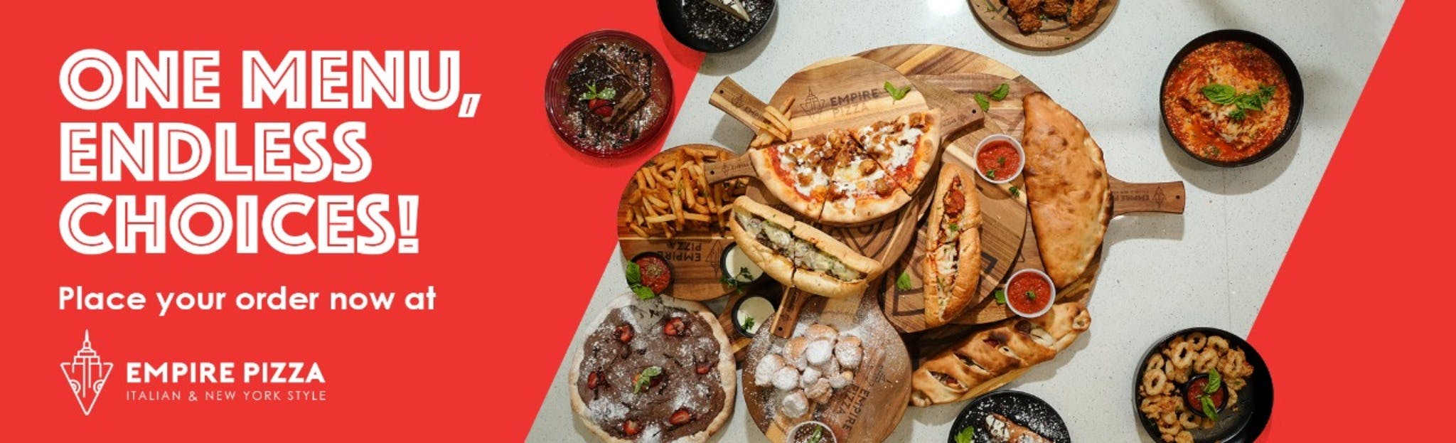Our meat lovers pizza is packed with bacon, ham, meatballs, mozzarella, pepperoni, and sausage on our signature empire’s red sauce.